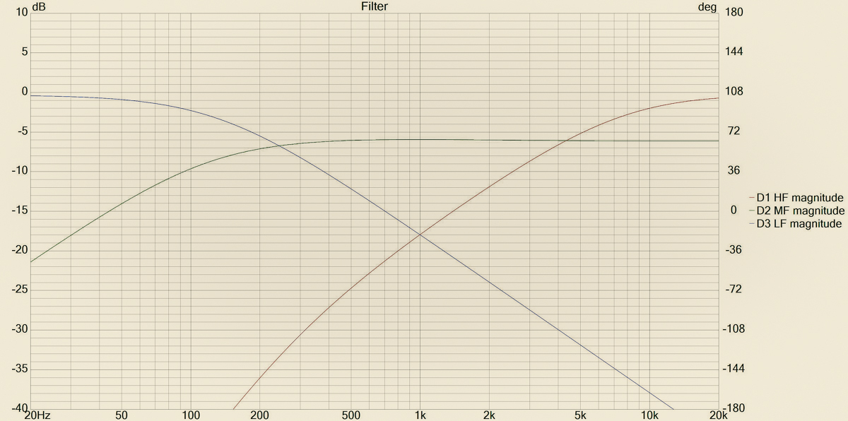 Классически "правильная" форма Step Response говорит о том, что геометрические центры динамиков и задержки, вносимые фильтрами, хорошо согласованы друг с другом.